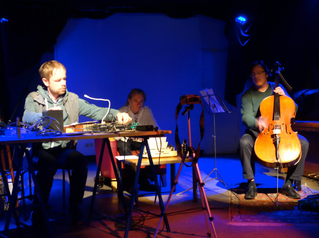 Cosmicus Live Aufführung, v.l.n.r. Harald Ansorge, Johan Robin und Nicholas Young