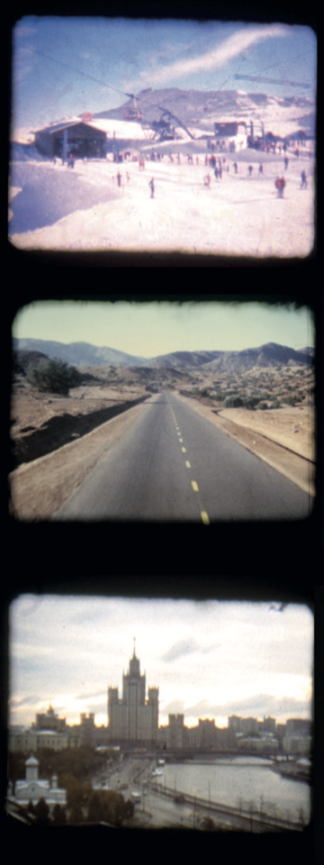 hin bewegen zu müssen. Wir reisen mit, und bleiben doch, wo wir sind. Überall finden wir rote Fäden, die aus dem alten Filmmaterial heraushängen, Geschichten die abbrechen, Gesichter die wieder auftauchen, Orte, die wir zu kennen scheinen und am Ende gelingt es eine Geschichte zu formen, in der neue Kontexte, Zusammenhänge und Bedeutungen entstehen. Wir bilden im ZUSCHAUEN einen Resonanz- und Kombina– tionsboden, auf den diese bewegten Bilder fallen und in uns entsteht, durch die Sprachen der Montage undder Klangkunst diese eine neue Welt.Erinnerungen der Vergangenheit werden heute zur Fiktion von morgen.Die Grundlage für das Projekt ist eine große, über Jahrzehnte gewachsene Sammlung analoger Amateur– filme, tausende Meter von 8-mm Filmaufnahmen aus der ganzen Welt ein ganzer Bilderkosmos zeigt das Reisen ab Mitte der 1950er bis Ende der 1990er Jahre.Die bewegten Bilder dienten einst der Erinnerung, heute erschaffen sie gekoppelt an die erzählten Geschichten und eine Soundcollage aus den Geräuschen von 8mm Film, Foleys und einem Sounddesign, das sich am Amateurklang der damaligen Zeit orientiert eine neue Erfahrungswelt. Musik mit analogen Synthesizer, dem Klang der damaligen Zeit, unterstüzen diese Wahrnehmung. Wir können nun losgelöst von den ursprünglichen Autoren durch eine neugeschaffene Welt reisen.
