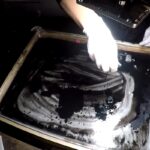 Während der Zeichenperformance werden verschiedene Techniken verwendet, es wird gezeichnet, gemalt, Bilder aus vorbereiteten Schablonenformen zusammen ausgelegt. Tusche, Sand, Druckfarben und Druckwalzen kommen zum Einsatz. Das zeichnerische Reper- toire und die vorbereiteten Formen und Folien dienen als Grundmaterial im großen Lagerraum. Technik und Erfahrung aus Malerei, Zeichnung und Druckgrafik werden angewendet. Es wird geforscht und experimentiert. Dabei wird der Versuch unternommen die Zeit einzufan- gen. Die Bewegung ist in der Gegenwart und wird sofort zur Vergangenheit.